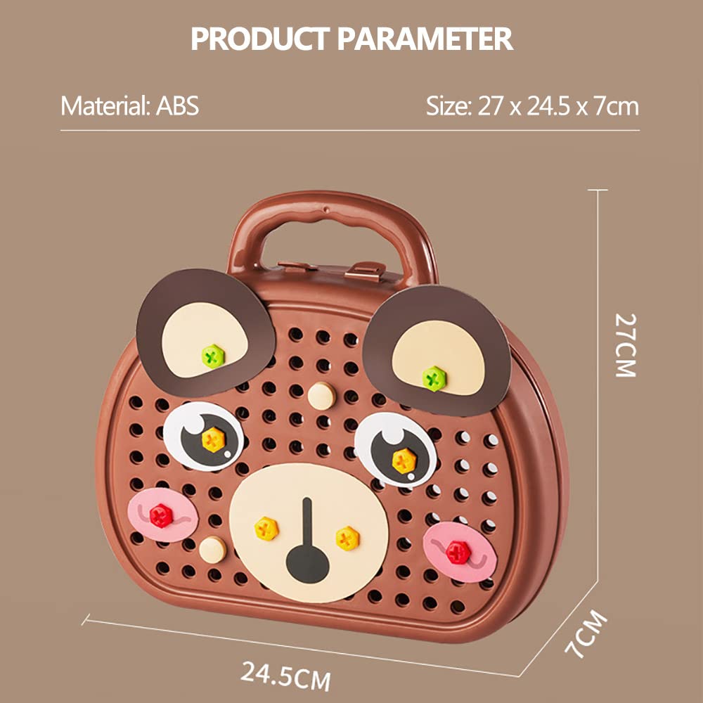 Building Toy Set:This kids' drill set is packed with colorful pieces, including large nuts and bolts. It features a 3D electric drill with two interchangeable bits, a wrench, a screwdriver, an instruction book with various patterns, and a handy portable storage case. The case doubles as a drilling board, making jigsaw puzzles a breeze. Easy to carry everywhere!